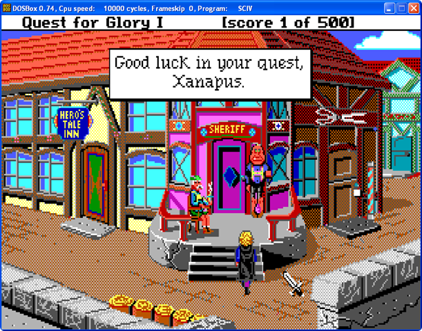 So yeah, here are 2 images which show the EGA and the VGA version of the 1st Quest for Glory game. The differences are night and day. You tell me, which would you prefer to play?