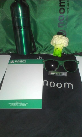 The water bottle is awesome. I’ve always wanted to buy one of those because they have them everywhere, but they are so expensive, so now I have one with the Noom logo on it.