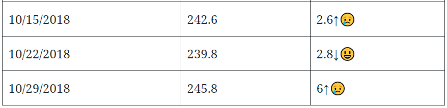 I am very disappointed in myself for the last few weigh in’s because I haven’t been doing the hard work that I have supposed to be doing. I have been eating my Weight Watchers and Lean Cuisine like I should, but I’ve also been saying yes to the tortilla chips and the candy because of Halloween, and I’ve paid the price in calories. I also haven’t been doing the work I need to do at the gym to help me to lose weight.
