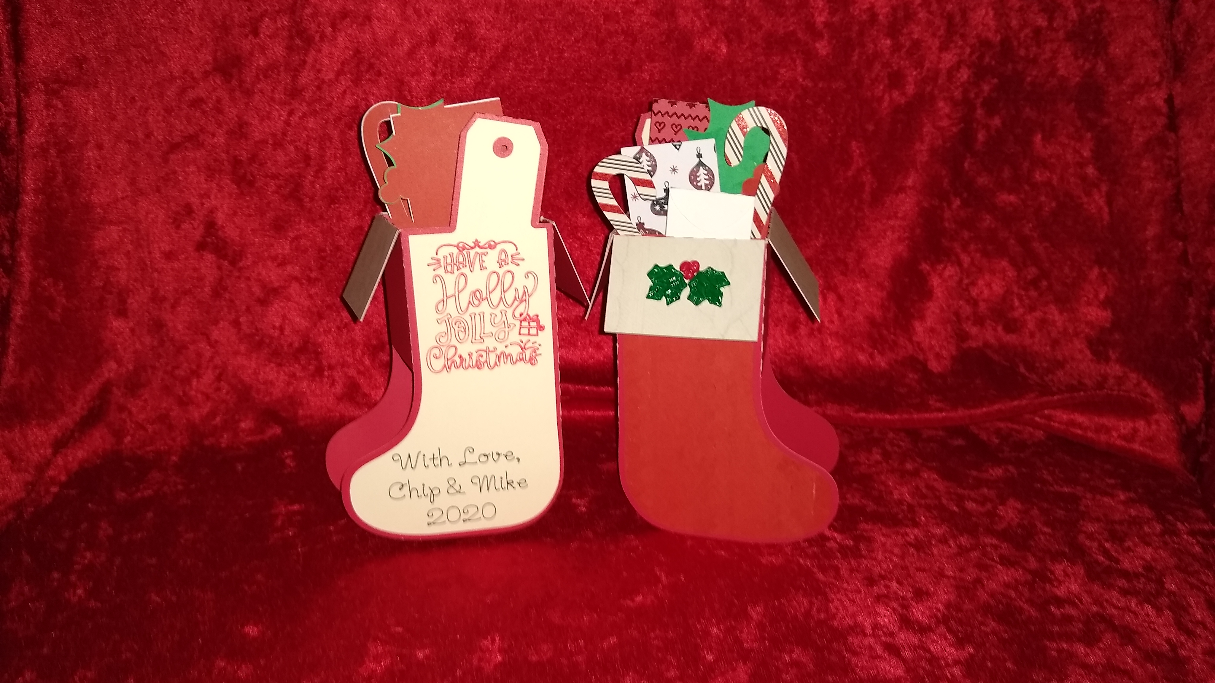 I took a picture of both back and front of all of the cards, but I’m just showing the front here, except for the stocking card, because I guess I just forgot to take a picture of just the front. I think the reason was because it wasn’t standing on its own on the velvet, but it did stand on its own on the table. And yes, the rocking horse does rock.