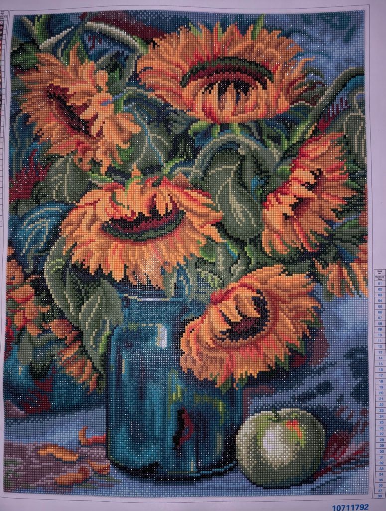 After we left my birthday dinner at Golden Corral, we went to Michaels to pick up my diamond paintings and I got a birthday coupon in my email for 40% off and so I bought the Sunflower Bouquet Diamond painting. Its regular price is $29.99 and my 40% off coupon brought it down to $17.99. Those were the first three Diamond paintings that I got from Michaels.