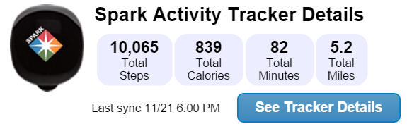It’s also interesting how The Spark works. You tap it 5 times and it will show lights to show you how you are doing. If it only has 1 light on the top, you haven’t done anything yet, if it shows half, then you know you’ve still got a ways to go. If all the lights come on, and they blink, then you still have a few minutes of exercise to go. You know you’re finished when all the lights glow and they don’t blink. That’s when you can sigh and say I’m done! And if you meet your goal for the day, the week or the month, you get a trophy. The image at the top of this paragraph is my first trophy which says I met my goal of 6000 steps. I got the same trophy on my 2nd day using it. The trophies are a fun way to encourage you to meet all of your goals. Although, you don’t get an actual trophy, but if you do all of the work and eat right, you get a flat tummy, and isn’t that worth all the trophies in the world?