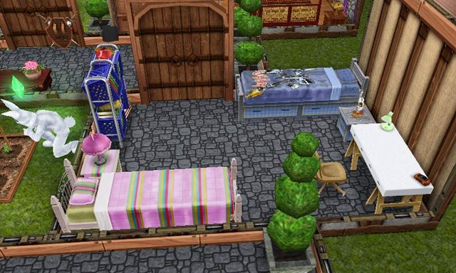 I have to admit that it really is a fun game to play, even though it is laggy and glitchy. I just built a Medieval Castle and it’s pretty cool, although it only had 1 bedroom which sucks because I have 2 Sims plus their 2 teenagers. It had 2 dining rooms so I converted one of the dining rooms into a bedroom for both the kids. It has both of their beds which they never sleep in since I have them drink an espresso to fulfill their sleep need lol. The bedroom is more for decoration really. I also wanted a place to put their study desk and their bookshelf and to showcase their Karate and Ballerina lamps LOL. It seems silly, but it’s fun for me.